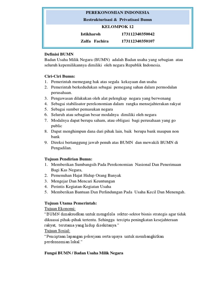 Persero ( badan perseroan) persero ialah bumn yang berwujud perseroan khusu yang asetnya terbelah dalam sekuritas yang sebagian memiliki 51% sekuritasnya yang dipunyai oleh negara dengan tujuan pokok untuk menghasilkan laba untuk negara. 19 tahun 2003, pengertian bumn adalah suatu badan usaha dimana modalnya dimiliki oleh pemerintah yang berasal dari kekayaan negara. Istilah bumn atau kependekan dari badan usaha milik negara memiliki pengertian sebagai suatu badan usaha, dimana modalnya dimiliki oleh pemerintah yang berasal dari kekayaan negara. Tujuan dari didirikannya perusahaan bumn persero ini ialah untuk mendapatkan keuntungan, dan juga untuk memberikan pelayanan kepada masyarakat. Berikut ini terdapat 2 bentuk bentuk dari bumn, yakni sebagai berikut: Bentu bumn adalah persero dan perum. Bumn termasuk pelaku ekonomi dalam sistem perekonomian nasional. Memupuk modal melalui penjualan saham kepada publik c. Bumn dibagi dalam dua bentuk perusahaan. Namun, selain itu juga memiliki tujuan lainnya seperti: Fungsi dan peran dari didirikannya badan usaha milik swasta. Bumn sendiri merupakan istilah yang digunakan untuk penyebutan dari badan usaha milik negara, dimana seperti dari namanya tentu bisa diketahui kalau kekayaan negara ini dimiliki oleh pemerintah dan sudah diatur dalam uu no. 19 tahun 2003 tentang bumn, badan usaha milik negara terdiri dari dua jenis, yaitu badan usaha perseroan (persero) dan badan usaha umum (perum).